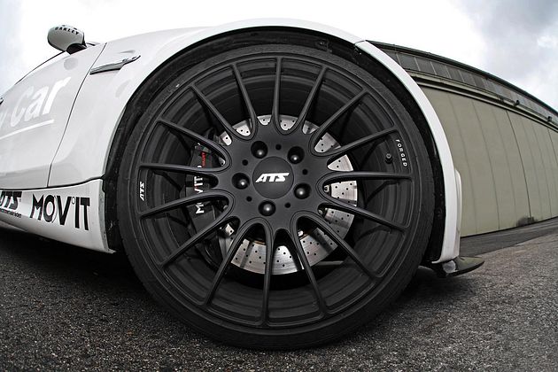 Тормозящими элементами для 19-дюймовых колес, обутых в резину Dunlop Sport Maxx, отныне являются углеродно-керамические тормозные диски размерностью 370- и 380 миллиметров спереди и сзади, соответственно.
